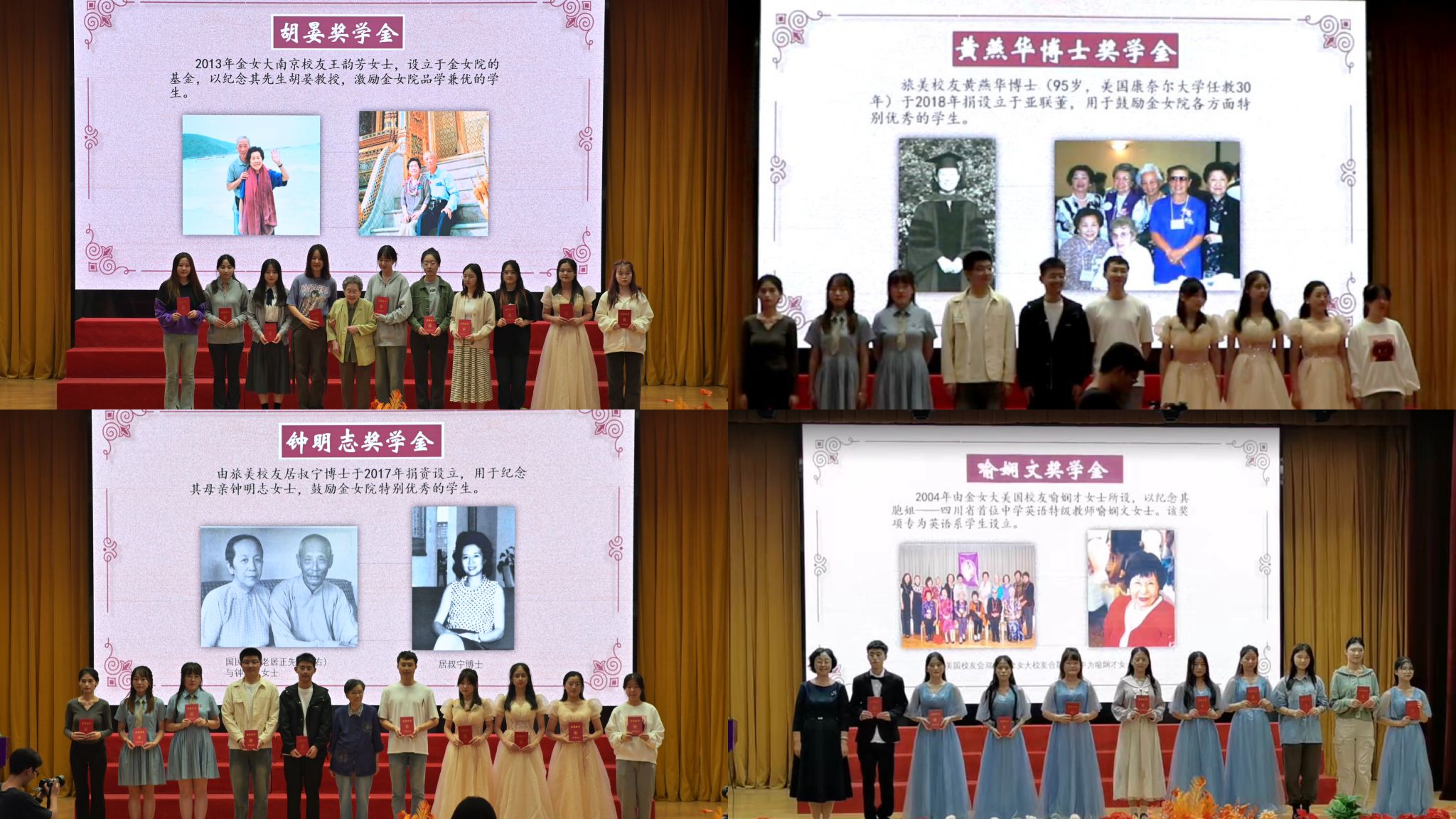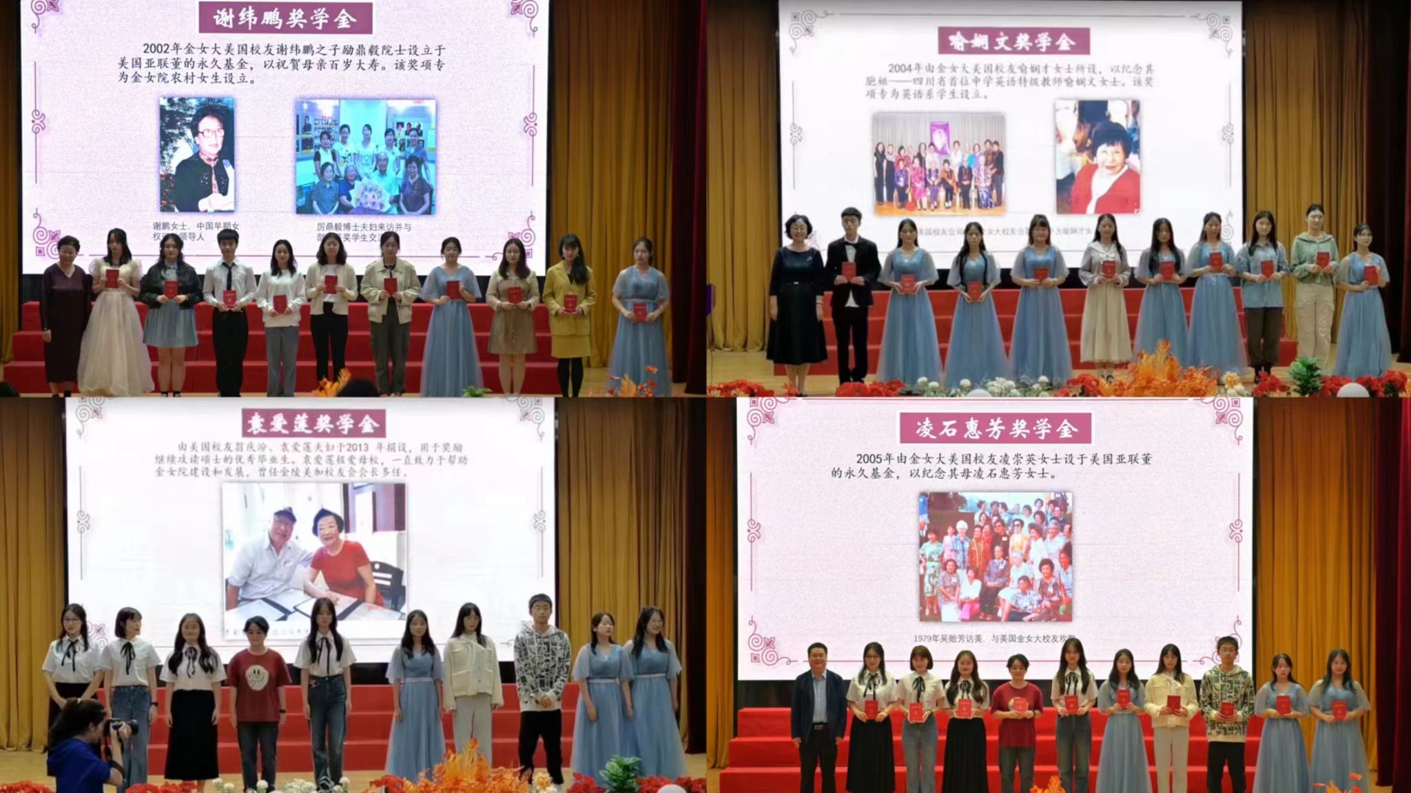 Ginling歌会暨校友工作和奖助学金颁奖大会在南京师范大学随园校区贻芳报告厅隆重举行,金女大南京校友会名誉会长王韻芳,金女大南京校友会常务理事石尧,金女大、博彩网址大全