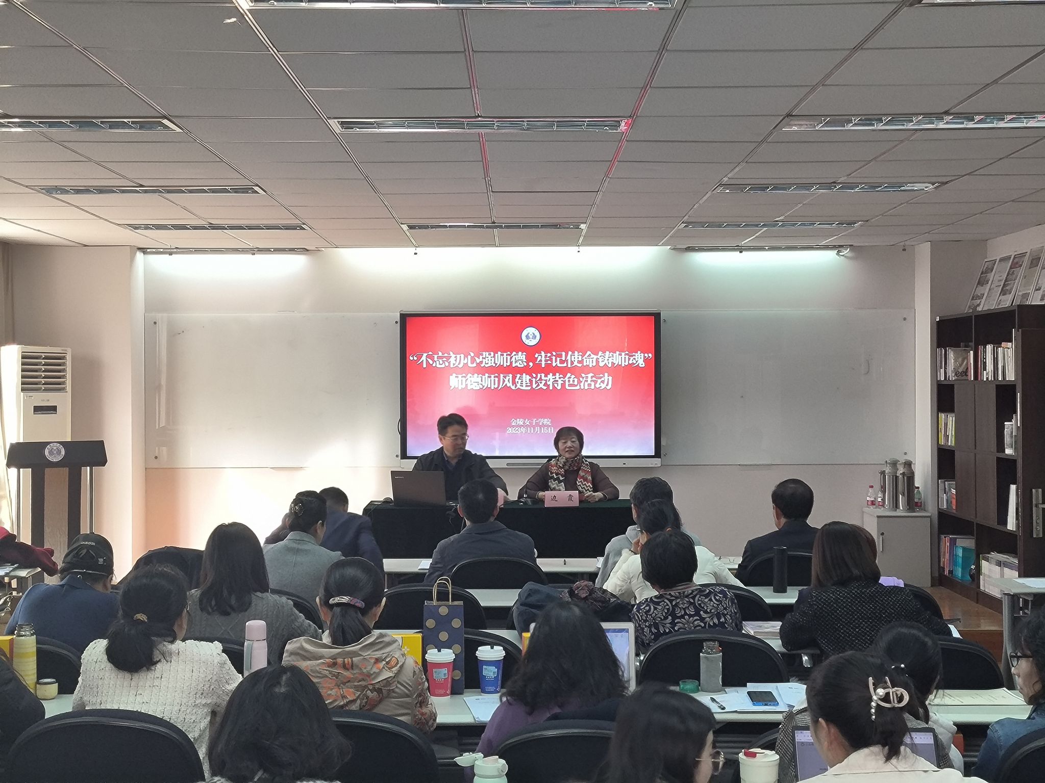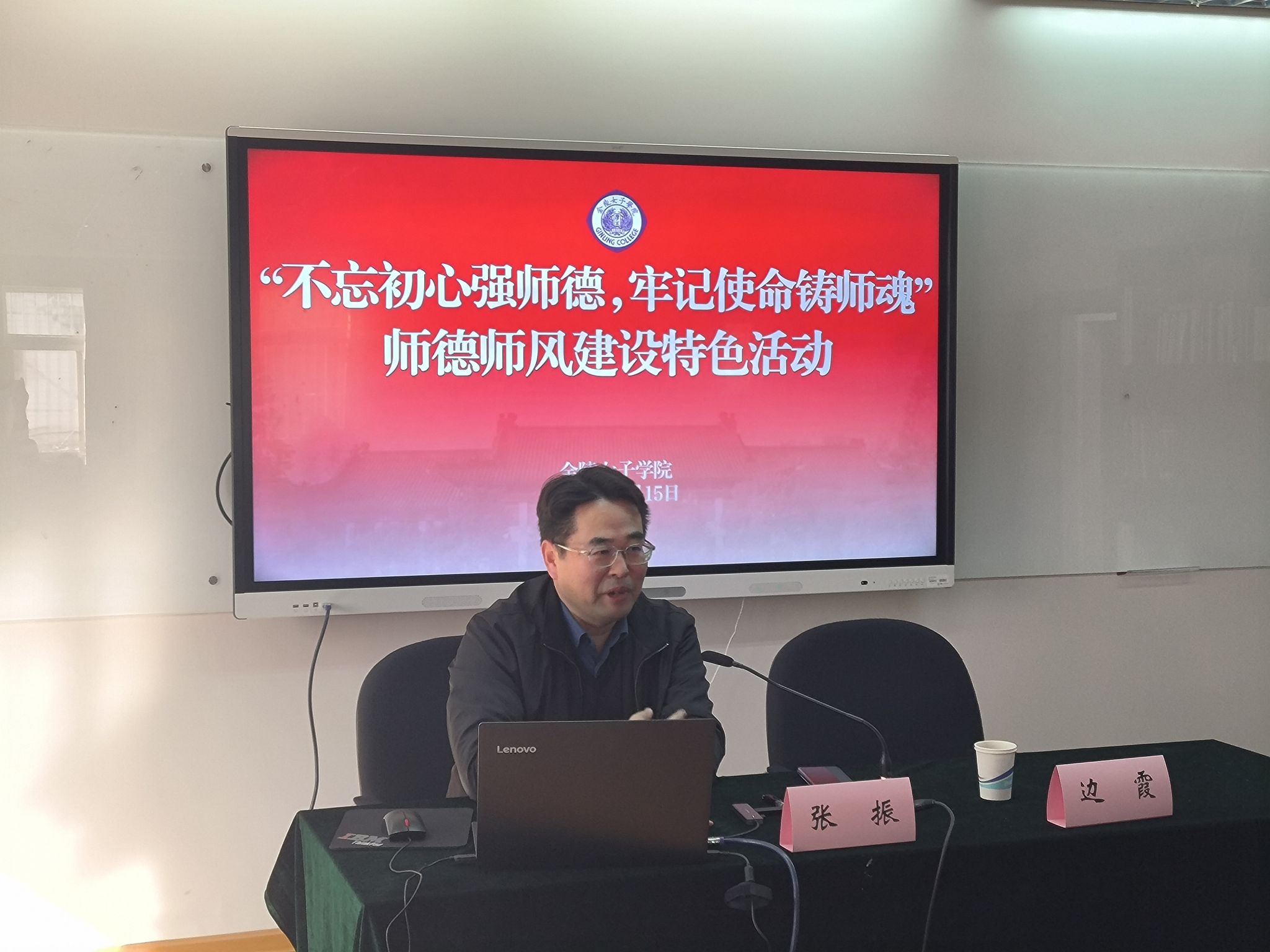 为大力建设师德高尚、业务精湛、结构合理、充满活力的高素质专业化教师队伍,1115日下午,博彩网址大全 开展了师德师风特色建设活动,邀请南京师范大学人文社会科学研究院院长张振教授作题为《国家社科项目申报要点及其体会》的专题报告。会议由学院院长边霞主持,学院全体教职员工聆听了本次报告。