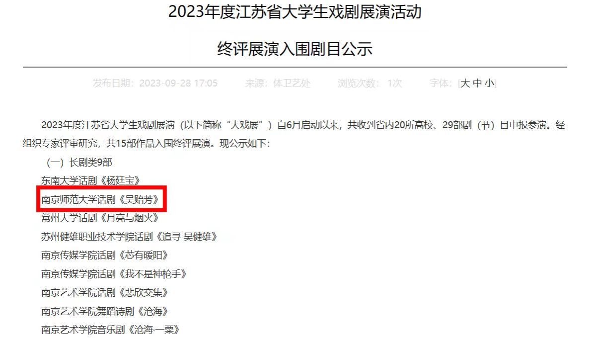 距《吴贻芳》登上2023江苏省大学生戏剧展演终评舞台
