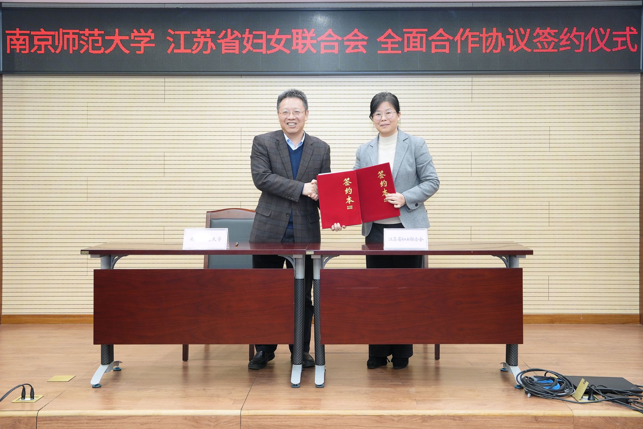 12月25日下午,南京师范大学与江苏省妇女联合会全面合作协议签约仪式在省妇联会议室举行。省妇联党组书记、主席朱劲松,党组成员、副主席康莉,党组成员、副主席、机关党委书记李磊,党组成员、副主席(挂职)许超仪,一级巡视员沈梅,南师大党委副书记、校长华桂宏,党委常委、副校长张连红,以及省妇联、南师大相关部门和学院的负责同志出席签约仪式。签约仪式由康莉主持。