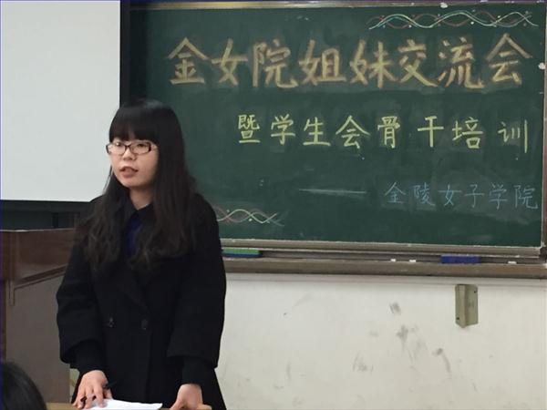 2016年3月23日下午4点,博彩网址大全 姐妹交流会暨学生会骨干培训在学正楼503教室顺利举行。本次姐妹交流会上,我们邀请到南京大学研究生会主席助理、政府管理学院研会副主席孙思学姐与大家分享学生工作经验与方法。