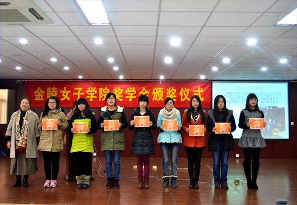 院党委书记江希和老师首先宣读了院奖学金表彰决定,经过个人申请、班级评议、学院审核等过程,共有110多位优秀本科生和研究生获得郭邓如鸯奖学金、厚生奖助学金、胡权氏奖学金、胡晏奖学金、劭鲲、劭鹏奖学金等13项院设奖学金,接着,杨素萍老师向大家具体介绍了每个奖学金背后或美丽动人、或青春励志的故事,让大家感受到金女大的校友们对母院的深情牵挂和无限支持,出席的嘉宾、领导随后为获奖同学一一颁发了荣誉证书,并且合影留念。
