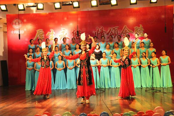 教职工艺术团的老师们则以黑衣红裙相衬,演绎高难度的《鼓浪屿之波》,茫茫鼓浪屿、漫漫台湾岛、传递出对祖国的热爱,对海峡两岸团聚的渴望,声情并的歌声委婉动人,让人沉醉。而劳动与社会保障系的同学为大家带来了《打起手鼓唱起歌》,独具匠心的她们不但改编了曲子,还在中间加入了优美的民族舞蹈,表演欢快活泼,极富节奏感和视觉冲击力。最后,高级研修班的女企业家校友们以女人味十足的《踏浪》和《女人花》合唱,将本次歌会带入尾声。