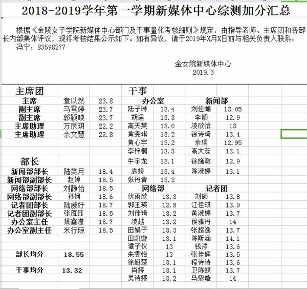 2018-2019学年第一学期新媒体中心综测加分汇总