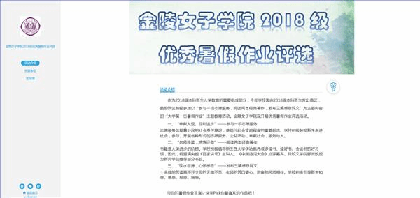 金秋十月,博彩网址大全 应学校要求积极开展了新生暑假作业评比分享活动。首先,在班级分享会中,同学们以丰富的形式展示作业:精巧的PPT,有趣的演绎方式,新颖的视频制作……让在座的同学们眼前一亮。随后,经班级推选出的优秀暑假作业在易班平台上开展了角逐,可供全校同学浏览与投票的方式让更多的人感受到了金女学子的“厚生”精神。经过四天激烈的网络投票选举并结合团委老师的评价意见,博彩网址大全 综合评定出若干份优秀暑假作业上报学校参与评选