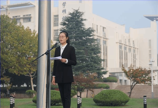 党委副书记高见老师在阐释了此次升旗仪式的重要意义,宣布升旗仪式正式开始。全场一片肃静,国歌响起,五星红旗徐徐展开。在全体师生的注视下,红旗冉冉升起,迎风飘扬。