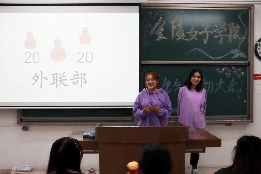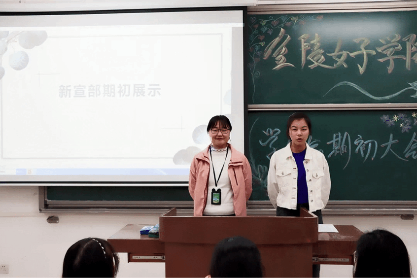 经过暖场的小游戏后,会场的气氛被点燃了。部门展示环节按照文体部、新宣部、办公室、学科部、外联部的顺序展开。各部不仅介绍本部职能、未来工作规划,还介绍了各部门成员,彰显了各自的特色。