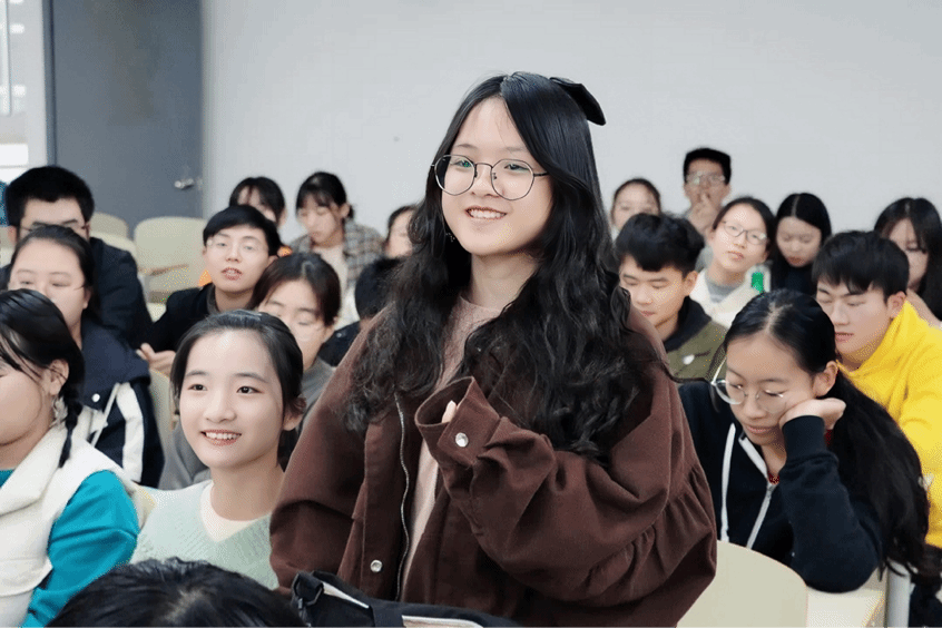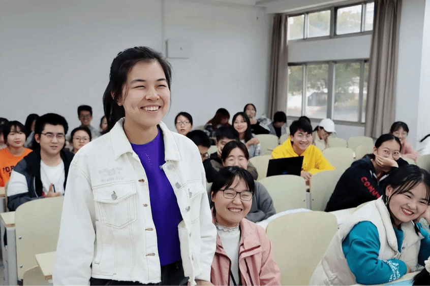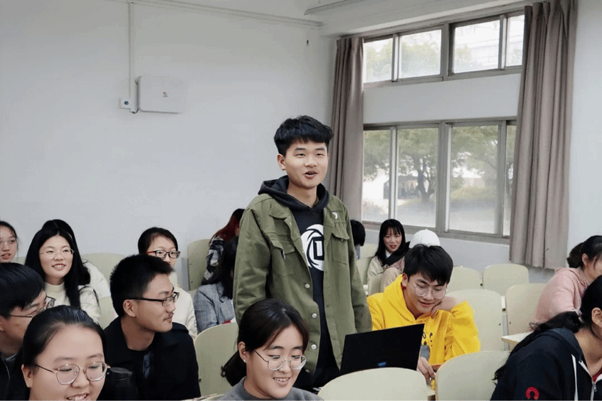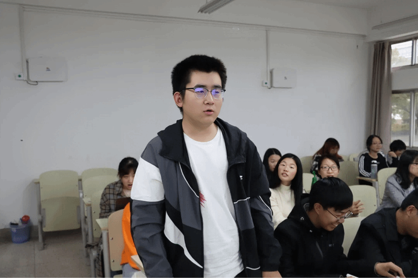 在破冰小游戏中,同学们轮流进行自我介绍,通过随机选取座位坐标——第几列第几排,来选取下一位起立发言的同学。大家不但提及了自身的喜好、性格,而且幽默风趣地介绍了自己的家乡。诸如周东同学的“成都,一座辣得让你哭的城市”,费含同学的“苏州,一座甜得发齁的城市”等话语成功将大家逗乐,笑语声此起彼伏。
