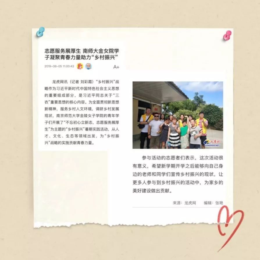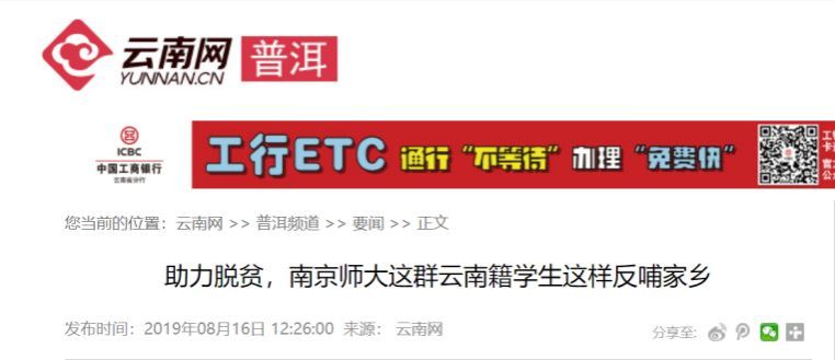 2019年暑期,博彩网址大全-博彩平台网址大全 “不忘初心立新志,志愿服务展厚生”暑期社会实践团队以乡村振兴为主题,服务多地的优秀事迹受到云南网、南京市电视台、龙虎网、今日头条等多家媒体的关注,并做了相关报道。
