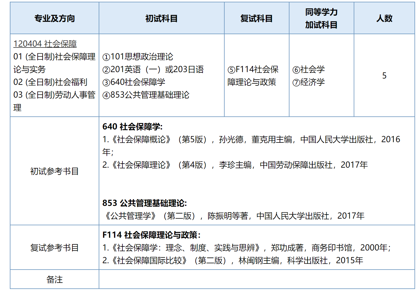 2023年社会保障硕士招生初定计划为5人,其中已推免接受3人,剩余可用招考计划为2人。