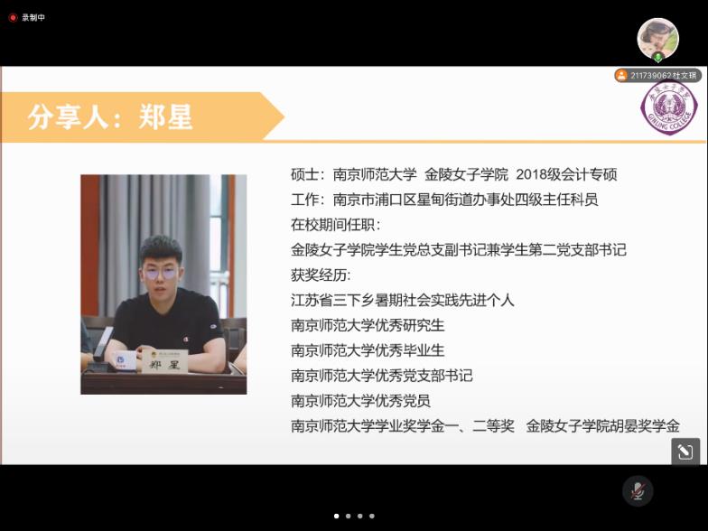 工作经历上,郑星校友分享了他在20208月参加培训、同年9月在星甸街道办事处工作、20215月在浦口区委组织部参加活动等的经历。最后,郑星校友谈个人的感受感悟,希望大家能够好好思考公务员这条道路是否适合自己,明确好自己的求职方向。