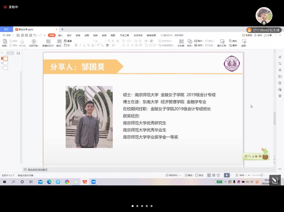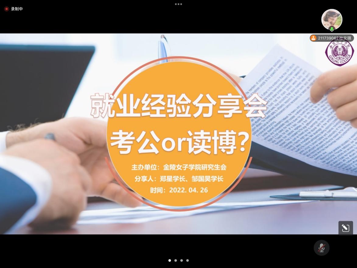 426日晚上19点,博彩网址大全 研究生会主办了求职就业主题线上活动,特邀博彩网址大全 2020届会计专硕郑星校友和2021届会计专硕邹国昊校友,针对考公和读博的话题,与大家分享经历和交流经验。