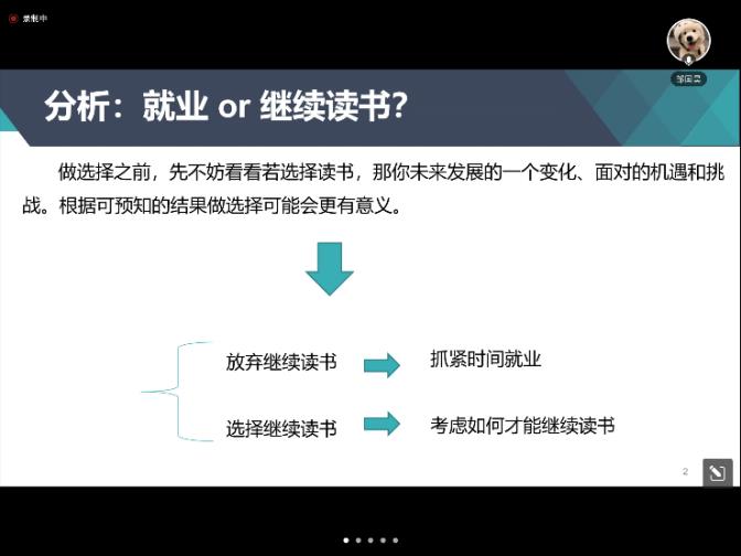 第二位分享人邹国昊校友为我们带来他在考博方面的个人经验,为大家分析求职还是要继续读书考博。邹国昊校友为我们分享了在读博方面的机遇、挑战和方向,分析了读博在学术研究和科研方向上的机遇、能够暂时规避就业压力、在未来从事教师工作上的优势等,同时也为我们指出了未来读博方向上的挑战,需要进行的项目、学术任务和同业竞争压力等。最后邹国昊校友也为我们提供了读博方面的建议,包括保持心态、与报考导师积极交流、同时做好多手准备等。