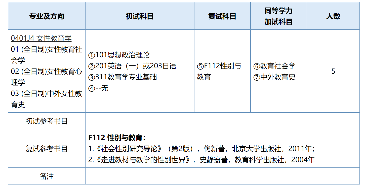 欢迎对性别研究有兴趣的具有推免资格的学生申请南师大女性教育学硕士研究生!