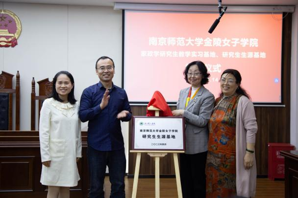 博彩网址大全 院长边霞,树人学院经济与民生福祉学院副院长苗森共同为博彩网址大全-博彩平台网址大全 家政学研究生教学实习基地揭牌,南京师范大学家政学硕士点负责人赵媛、江苏省家政学会常务副理事长兼秘书长熊筱燕、树人学院经济与民生福祉学院副院长家政学专业负责人郭人菡共同为博彩网址大全-博彩平台网址大全 研究生生源基地揭牌。