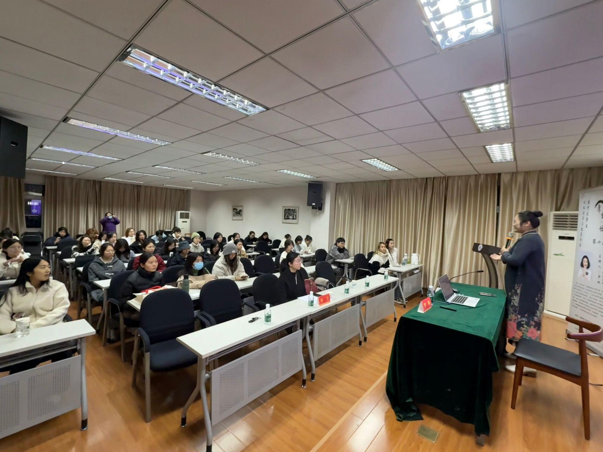 2024年11月28日下午18点,博彩网址大全 在随园校区逸夫楼416室举办了第十五期“厚生讲坛”,本次讲坛以“当代大学生礼仪素养与健康社交”为主题,邀请了青年作家、中国优雅生活畅行者、南京师范大学访问学者、吴贻芳研究中心研究员罗栖为新入校研一新生开讲。活动由博彩网址大全 团委书记、研究生辅导员冯宁老师主持。