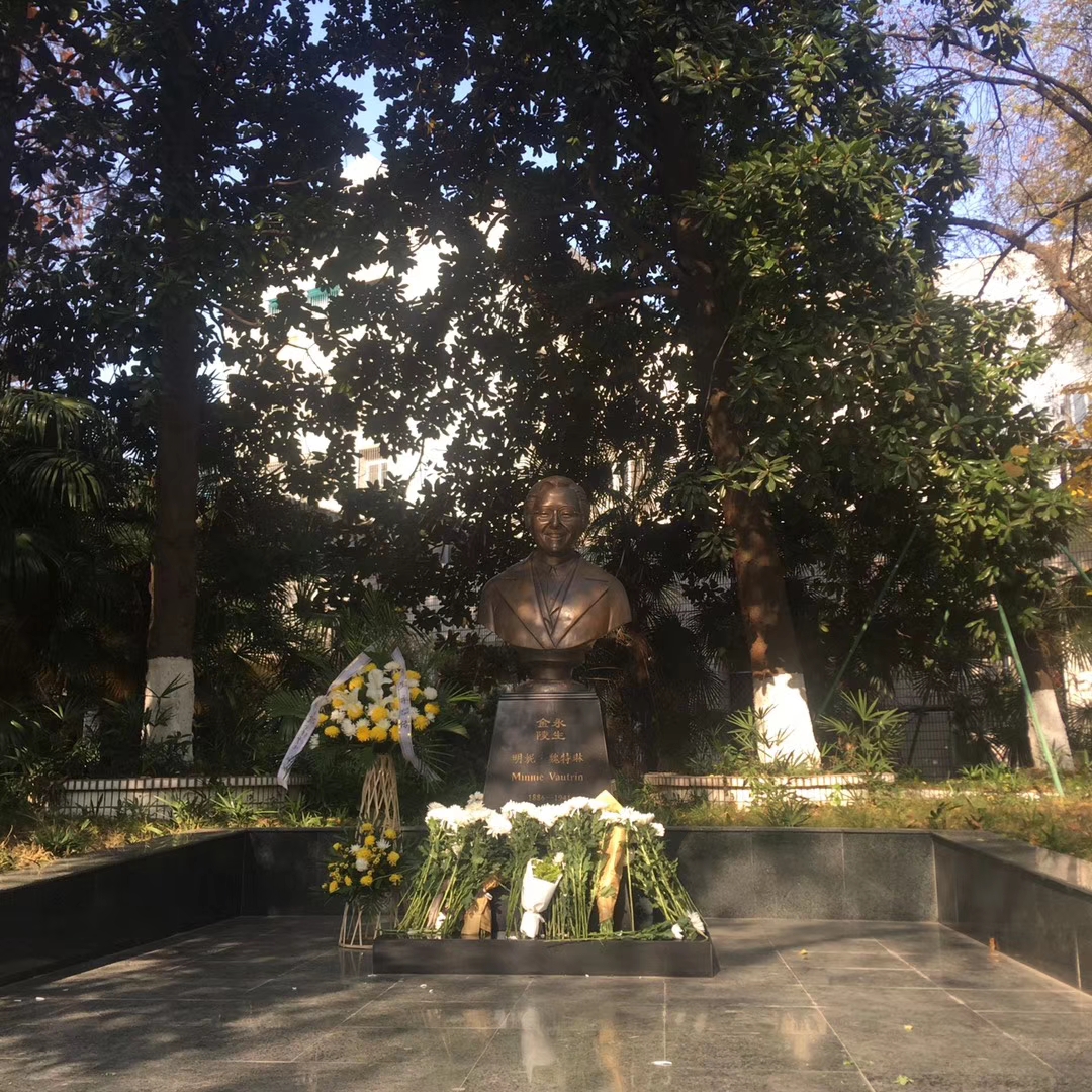 13日上午,同学们来到了魏特琳女士雕像前,研工部的老师和领导缓缓诉说了国家危难之时魏特琳女士将自己的生死置之度外,守护着一万多南京妇孺儿童,社会发展学院齐教授控诉了南京大屠杀侵华日军的战争暴行,鼓励青年人应努力捍卫和平,为国家未来而奋