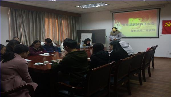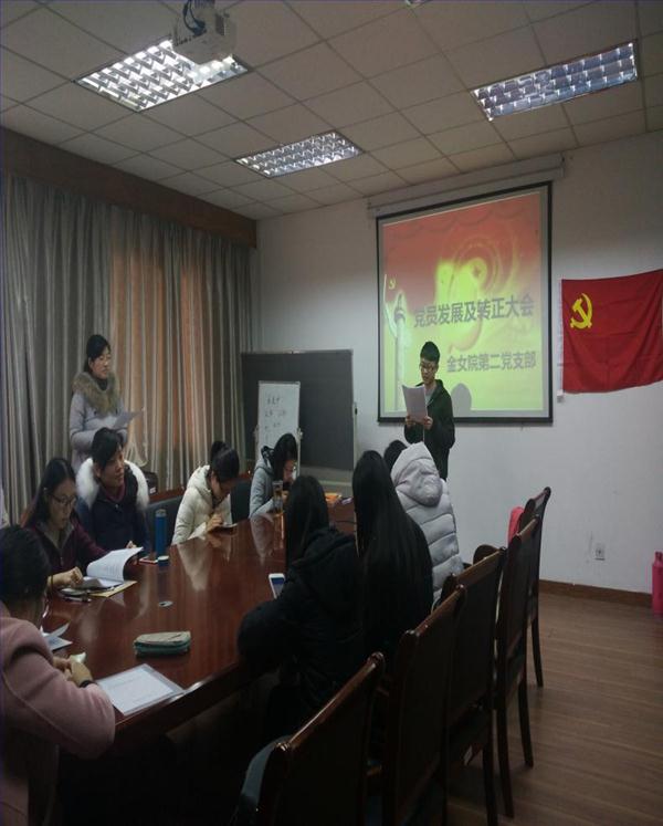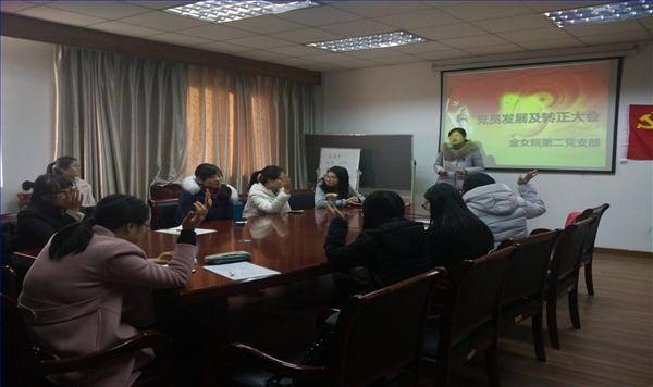 首先进行发展预备党员议程,姜慎、刘晶晶、刘雨欣三名同志作为发展对象,依次向与会人员宣读《入党志愿书》,并介绍其个人基本情况,陈述自身的入党动机、思想情况和经历,并展开深入的自我批评。随后两位入党介绍人针对发展对象在学习、生活上的表现给予客观的评价,指出其需要改进完善的地方,并对她们未来发展提出了诚恳的建议。最后,通过党支部正式党员投票表决的方式,所有被发展对象均获得全票通过,正式发展为预备党员。