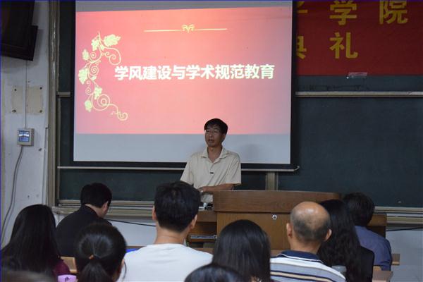 最后,郑铁松副院长进行了“学风建设与学术规范教育”,帮助新生明确研究生阶段的奋斗目标并做好学业规划,并强调学术规范及良好的学风在科研中的重要性。希望大家“遵守学术规范、坚守学术诚信”,形成崇尚科学、追求真理、不畏艰难、勇攀高峰的学术氛围。