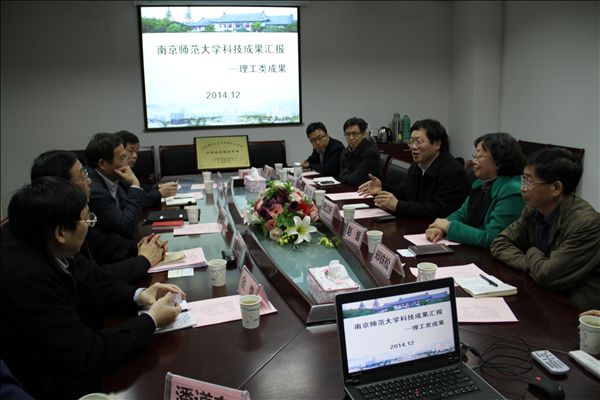 南师大科技处胡卫东副处长就学校近几年来的科技成果与地方经济发展相结合的案例做了比较全面的介绍。高校科研成果的转化与服务社会离不开平台机构的建设,目前南师大省级以上重点实验室或协同中心等科研机构平台已经达到了30多个,特别是在地理信息系统、水产养殖方面形成了自己的特色。