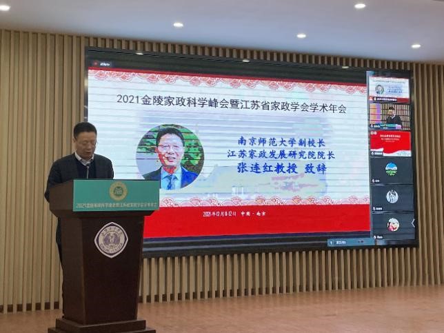 张连红在致辞中首先代表南京师范大学向参会的专家学者表示欢迎,随后介绍了学校事业发展和家政学科发展情况,分析了家政学科面临的新时代课题和家政服务业发展面临的新机遇,期待与会代表通过围绕热点问题的对话与分享,为推动现代家政学科的发展和促进家政服务业提质扩容,实现高质量发展做出积极贡献。