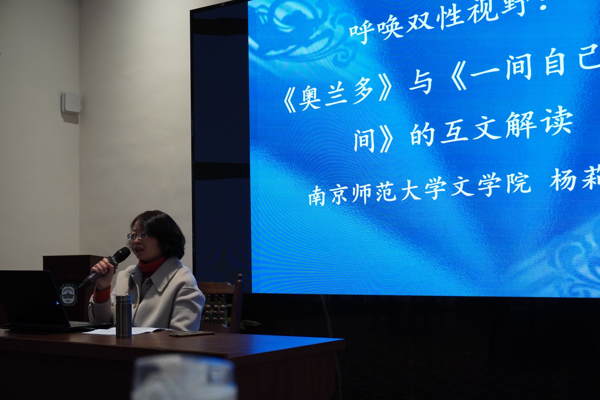 1213日下午,江苏省“妇女/性别研究学术月”南京师范大学专场第二场讲座在南京师范大学随园校区100号楼举办。此次讲座邀请了南京大学文学博士、南京师范大学文学院博士生导师杨莉馨教授来分享关于伍尔夫《奥兰多》与《一间自己的房间》的互文解读,并与在场的学生进行文学思想的对话。