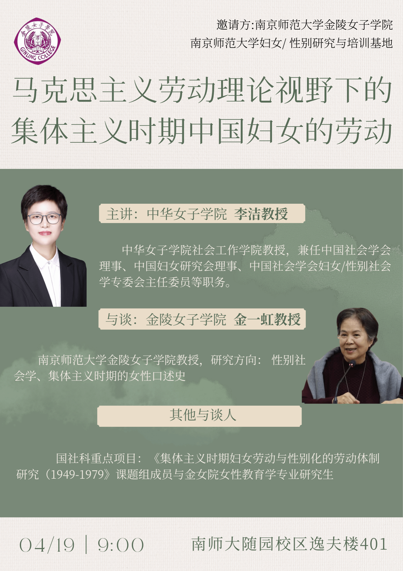2024年4月19日上午,在南师大随园校区逸夫楼401会议室举办了题为“马克思主义两种生产理论视角下的集体主义劳动体制”的研讨会。中华女子学院李洁教授受南师大博彩网址大全