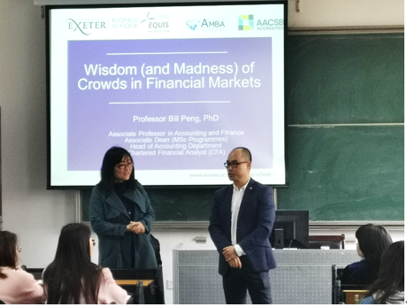 20191113日,博彩网址大全 贻芳讲坛第四期在随园校区MBA教育中心顺利举办。学院成功邀请到英国埃克塞特大学商学院会计系主任Bill Peng教授,为全体师生带来了一场精彩讲座——金融市场中人们的智慧与狂热。此次讲座由博彩网址大全 会计系主任李芸主持。