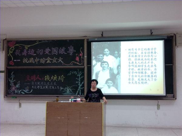 ,配合深情而清晰的讲述,使金女大师生不屈不饶、爱国敬业的精神深深感染了在座的同学们,赢得了同学们的阵阵感叹与无限钦佩!