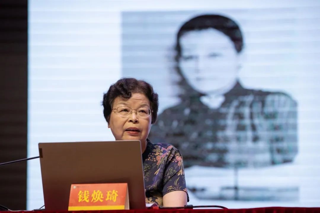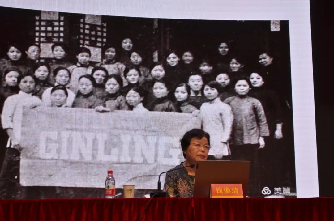 随后,钱焕琦教授介绍了吴贻芳校长的生平事迹。她详细介绍了吴贻芳先生的求学经历,她认为,吴贻芳先生有着锲而不舍的意志,在经历过家庭重大变故之后依然不放弃学习。同时,钱焕琦教授讲述了吴贻芳校长主校23年,尤其是在抗战时期,展现出的为国为民的崇高情怀和卓越的奉献精神。吴贻芳先生1985年逝世,距今已37年,但世界并没有遗忘她,金陵女子大学的美名依然在国际社会传播。究其原因,是对吴贻芳先生“厚生育人”教育理念与实践的肯定,是对吴先生炽热的爱国情感的赞颂。吴先生留下的教育遗产,吴先生的崇高人格具有永久的历史价值。钱教授引用了这句评价,“亲爱的祖国,国家的尊严,是沉淀在她灵魂深处的,无可撼动的感情。也是她一生中选择人生道路的最重要的价值尺度。”