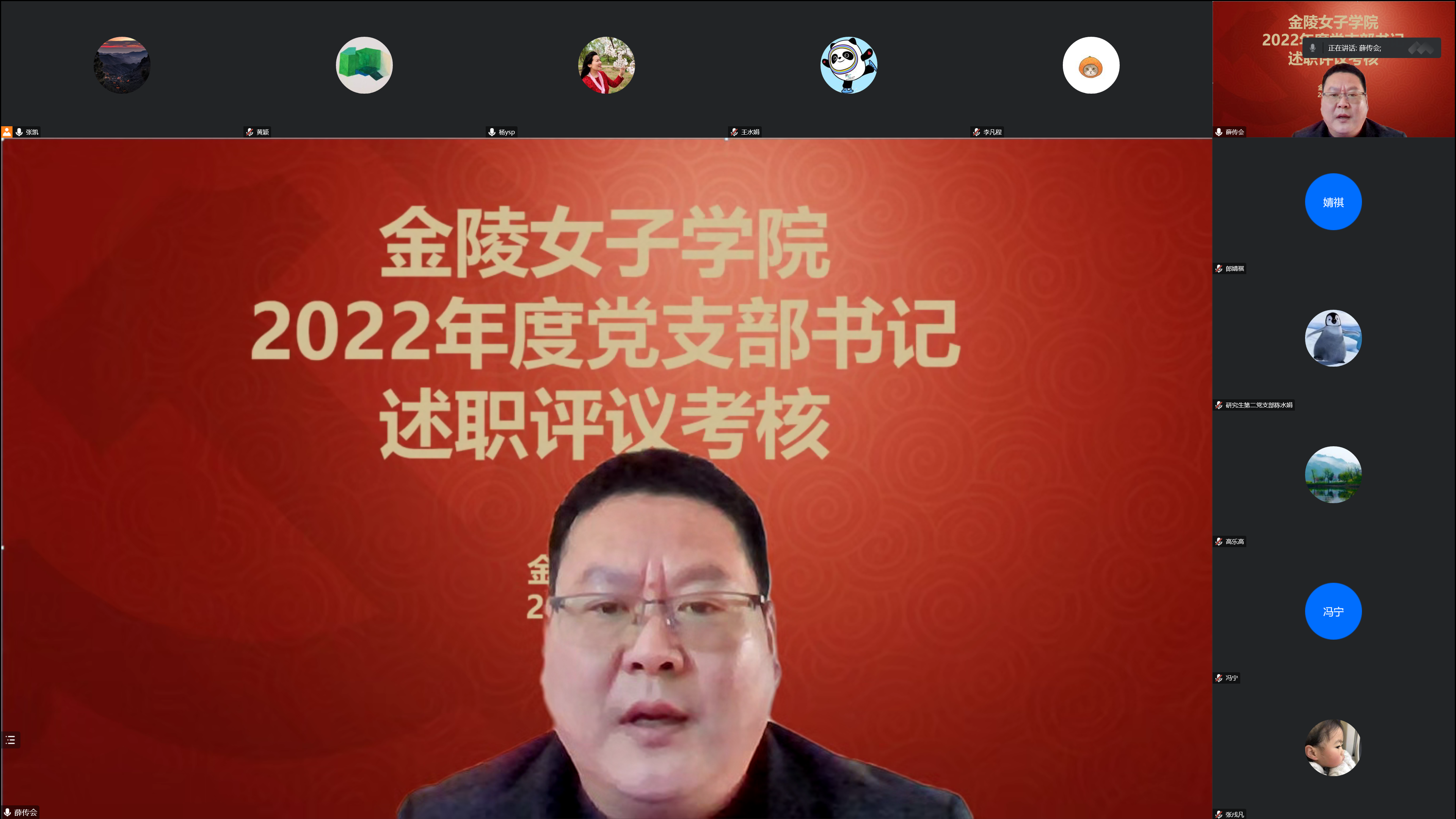 会上,薛传会结合学校《关于做好2022年度全校党组织书记抓基层党建述职评议考核工作的通知》,就本次考核工作提出了具体要求。随后3位教工党支部书记、2位本科生党支部书记和3位研究生党支部书记依次进行了现场述职,退休党支部书记作了书面述职。述职内容围绕党支部书记抓党建工作主责主业情况、深入学习习近平新时代中国特色社会主义思想和贯彻落实“三会一课”情况、以党建引领业务工作开展情况、党员教育管理服务等情况,以及抓支部建设工作存在的突出问题及原因,针对问题的整改措施和下一步工作思路等展开。