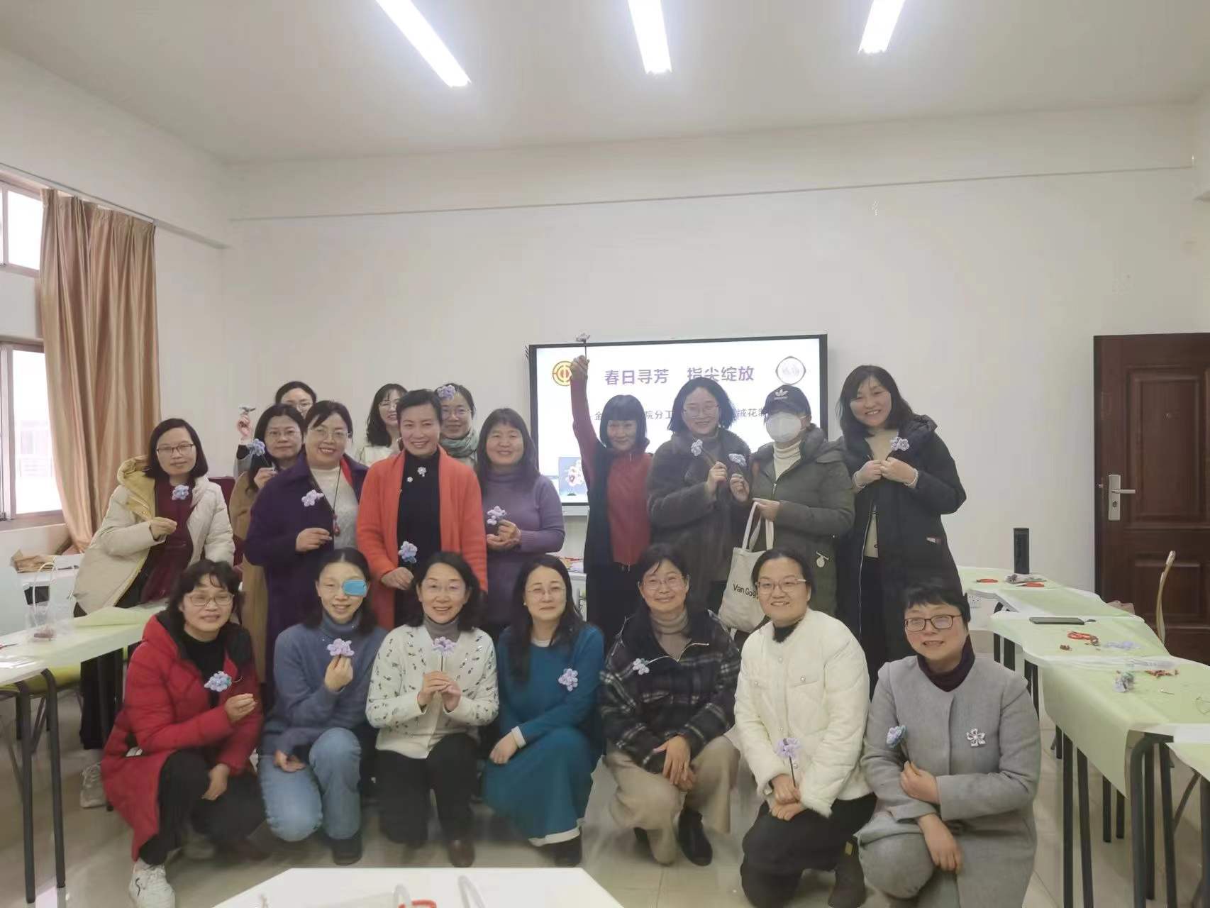 为庆祝“三八”国际劳动妇女节,丰富女教职工的业余生活, 博彩网址大全 分工会于202339日在仙林校区学正楼513室举办“春日寻芳 指尖绽放”女教师非遗绒花手制活动。学院二十几位女教师参加了本次活动。