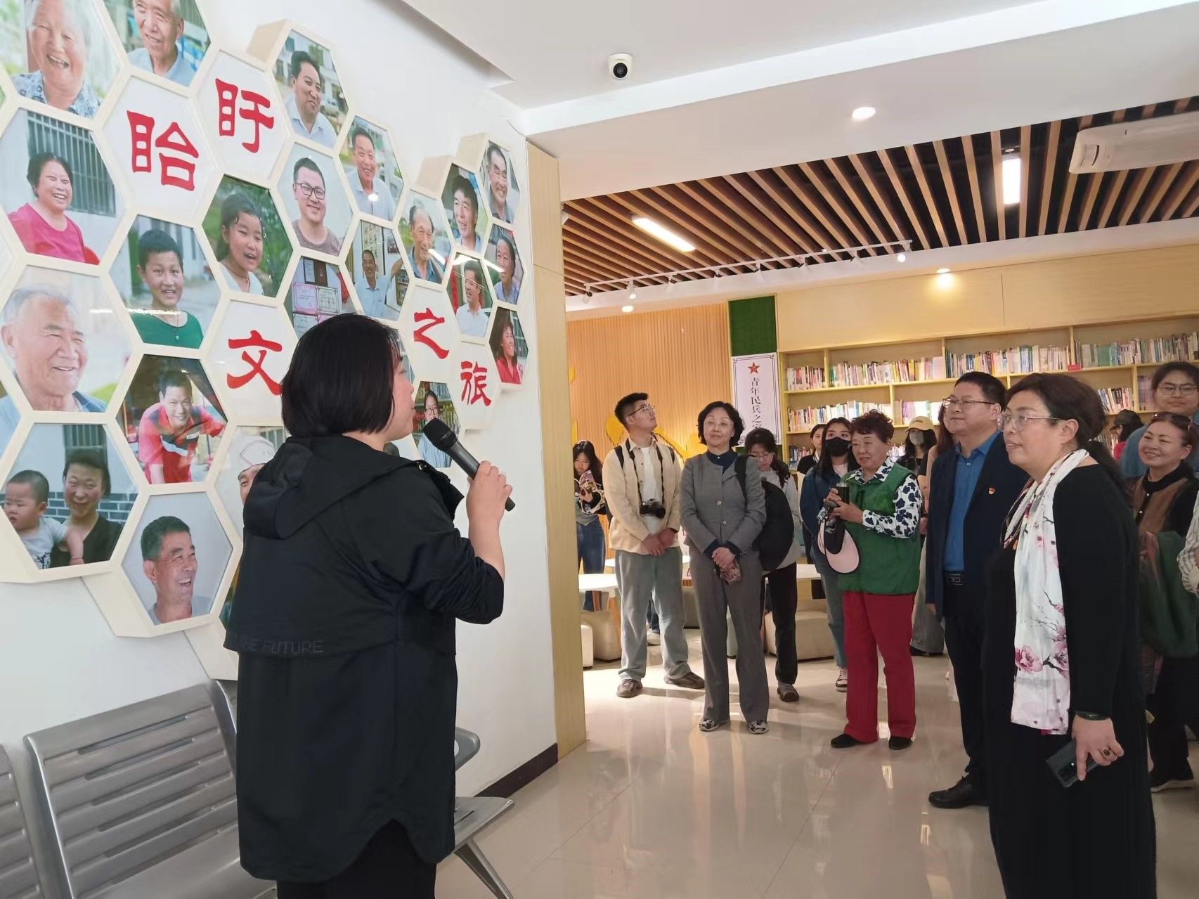 随后老师们来到获得“江苏省特色田园乡村”称号的盱眙县芦沟社区党群服务中心。在全国三八红旗手、全国妇女代表、江苏省人大代表、盱眙县黄花塘镇芦沟社区党总支书记徐玲的带领下参观了社区党群服务中心精心打造的“留守儿童课业辅导室”“公益放映厅”“暖心大食堂”“富民直播间”“共享菜园”“虾稻共生田”。徐玲书记和老师们分享了从辽宁舰首位女舵手转变为社区“掌舵者”成长为全国三八红旗手的心路历程,聆听了她在基层为民服务、勇做乡村振兴探路者的感人事迹。