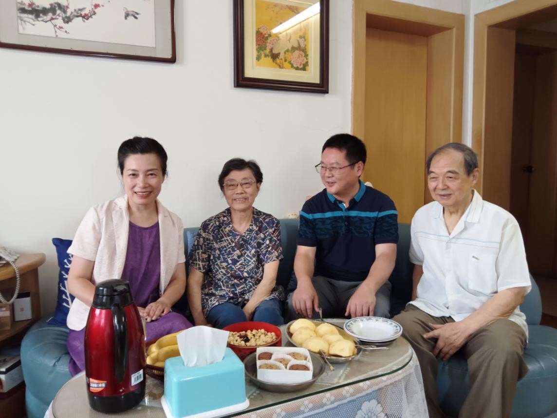薛书记给石老师介绍了学院发展的情况,特别是家政学开始招收研究生的好消息,也希望老校友们继续关心学院发展。祝愿石老师、章老师健康长寿,生活幸福!