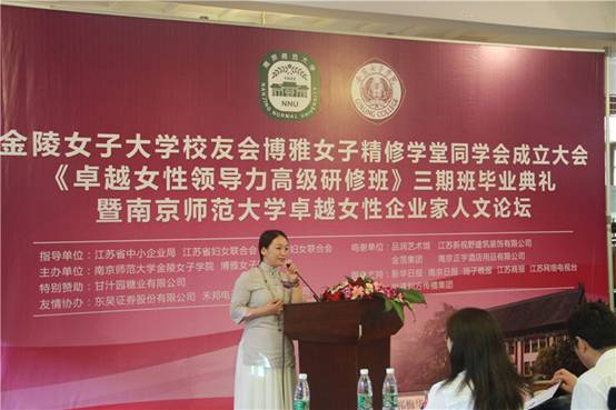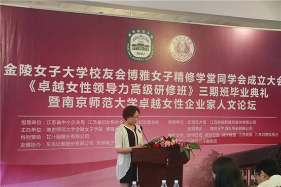 、与省局一起支持同学们的事业发展。施部长同时也是江苏省女企业家协会秘书长,在讲话中,她欢迎在座的各位巾帼精英们加入江苏省女企业家协会。