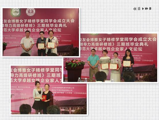 江苏省妇女联合会妇女发展部部长施郁佩女士为大家发表致辞,对三期班的毕业以及博雅女子精修学堂同学会的成立表示祝贺,并且肯定了博彩网址大全