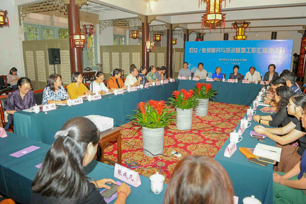 ,充分发挥南师大综合性学科优势,整合校内外资源,在推进妇女/性别研究和妇女培训、妇女发展中发挥积极作用,在学术研究、课程建设、社会服务方面成效显著,成为学校新时期重要的办学特色。随后,基地部分教师代表也先后发言,基地前主任钱焕琦教授介绍了吴贻芳研究中心自成立十年以来所做的工作,特别是传承吴贻芳老校长的教育思想、贯彻“全人教育”理念的成效;熊筱燕教授介绍了省家政学会成立以来取得的成果及今后发展的努力方向。社发院、文学院等其他学院的基地教师代表,也分别结合各自的学科专业,就性别教育及女性发展发表了自己的看法,表示今后要将妇女性别研究与社会服务紧密结合,竭尽所能推进基地建设,服务女性发展。