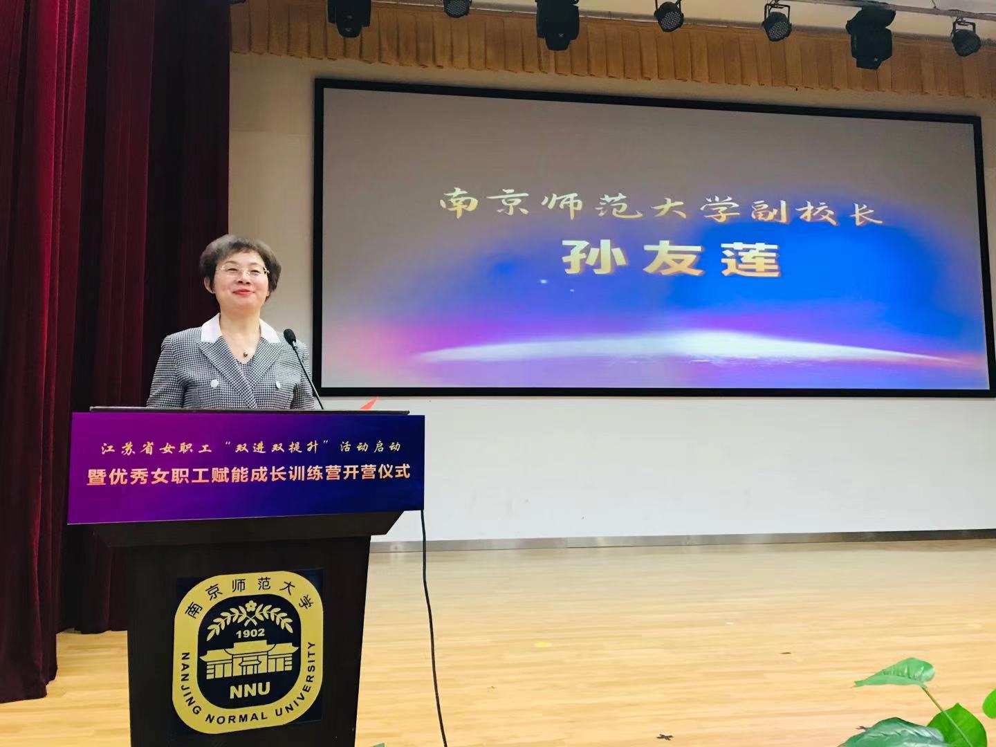 孙友莲副校长代表学校致辞,首先对江苏省女职工“双进双提升”活动启动和优秀女职工赋能成长训练营开营表示祝贺,对优秀女职工代表的到来表示热烈欢迎,同时也对省总工会长期以来对学校和博彩网址大全