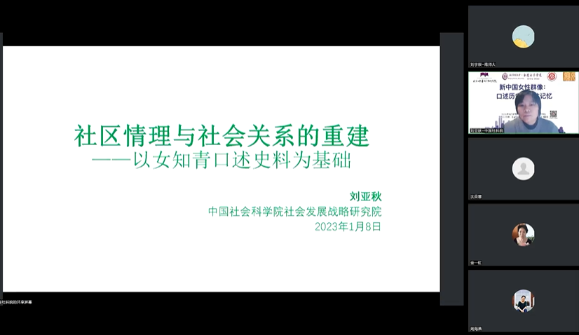 、南京大学当代中国研究院、中华女子学院与《妇女研究论丛》编辑部共同主办的“新中国女性群像:口述历史与集体记忆”工作坊在线上顺利举行。