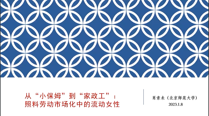 北京师范大学社会学院肖索未副教授以“从‘小保姆’到‘家政工’:照料劳动市场化中的流动女性”为主题,对于家政市场和流动女性的进行了研究。她从上个世纪80年代的“小保姆”初现到今天规模庞大的“家政嫂”群体,30余年间的媒体报道、研究文本以及她的课题组对家政工、家政经纪人和雇主访谈,以及一位从家政工到家政事业管理者的口述故事,将这一特殊的流动女性群体研究进行了历史的回溯,在一个看似“短时段”的分析中,历史地展现了家政服务市场化、平台化的管理制度乃至社会结构变迁以及从“帮忙者”到“受雇者”的关系变迁徐徐道来,对女性口述史的纵深发展颇有启迪作用。