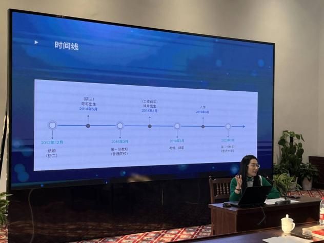 接下来,鲍俊逸博士在介绍了自我民族志的方法以及她选择以此方法探讨该议题的价值与风险之后,就以自身其近10年的成长历程,真诚地分享了自己结婚、生子、考博以及两次教职的具身体验。通过各阶段详实的时间表展示,鲍博士让与会者直面了学术妈妈在家庭和事业的平衡中所确需应对的日常和切实的挣扎;通过分析阐释几次重要转折点上她自身在选择和被选择过程中的各种经历和在此过程中她自反性的观察与思考,鲍博士对这个议题进行了超越经验分享的学术性反思,在自我、社群和社会制度以及文化层面,对当下的母职与教职的冲突与平衡问题提出了更加积极的个人思考以及群体性和制度性期待。