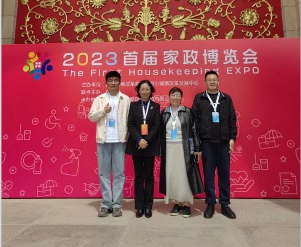 “2023首届家政博览会”于4月28至30日在北京展览馆举办。南京师范大学教授、家政学硕士点负责人、江苏省家政学会理事长赵媛,江苏省家政学会常务副理事长兼秘书长熊筱燕教授以及研究生组成的家政学团队前往北京参会。