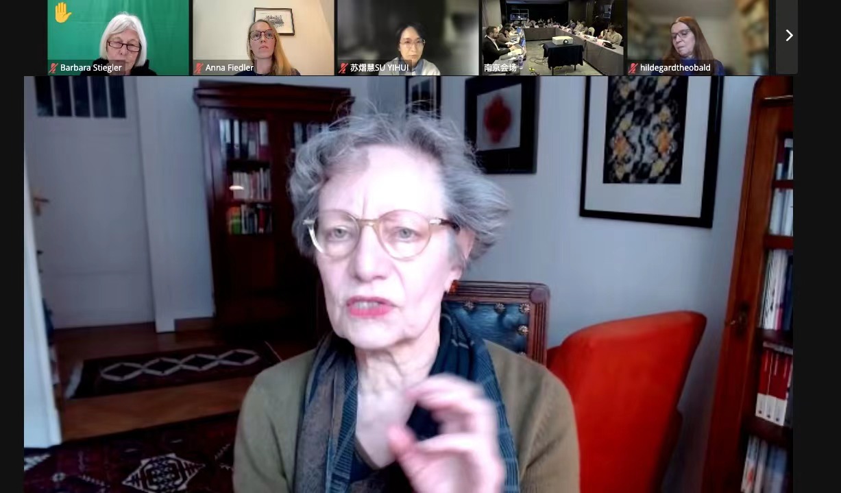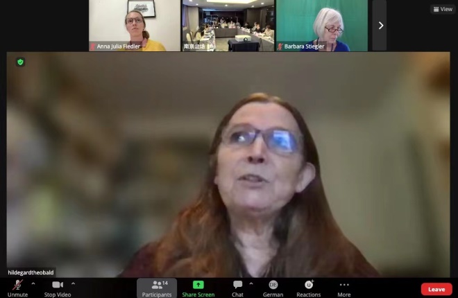 20221125日及26日下午,由德国弗里德里希·艾伯特基金会(Friedrich-Ebert-Stiftung (FES)与博彩网址大全-博彩平台网址大全 、南京师范大学妇女/性别研究培训基地共同主办的中德照护工作及性别平等(Sorgearbeit und Geschlechtergerechtigkeit研讨会在中国南京古南都饭店莫愁-建邺厅成功举行。受新冠肺炎疫情影响,本次讨论会采用“线上+线下联动的形式,通过ZOOM平台在南京、上海以及德国同步展开。德方艾伯特基金会驻上海代表处首席代表雷柏曼(René Bormann)先生、项目经理贝秉诚(Tobias Beck)、艾伯特基金会妇女和性别问题研究处前处长斯蒂格勒博士(Barbara Stiegler)、费希塔大学特奥巴尔德教授(Hildegard Theobald)、海因策博士(Cornelia Heintze)以及中方博彩网址大全-博彩平台网址大全 院长边霞教授、博彩网址大全 性别研究专家金一虹教授、杨笛副教授,社会保障方面专家周薇博士、赵晶晶老师、王若晶老师;家政学专家赵丽芬老师,老年社会学方面专家上海财经大学苏熠慧副教授、东南大学的吴心越老师、南京邮电大学李潇晓老师等学者以及博彩网址大全 女性教育学、家政学、劳动与社会保障专业的研究生们共同参加了本次讨论会。会议由德方代表费德勒女士(Anna Julia Fiedler)主持。