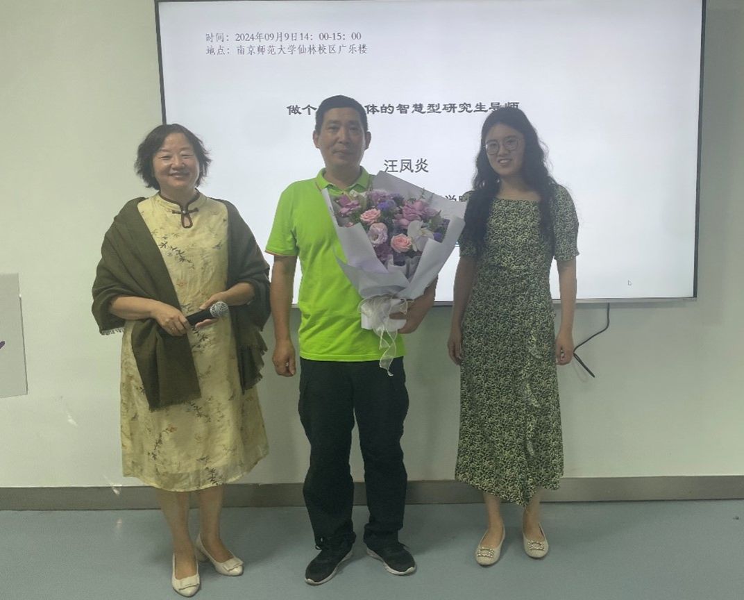 讲座结束,老师代表给汪老师送上鲜花,对汪老师致以谢意和敬意。本次研究生导师培训暨师德师风宣讲会圆满结束。