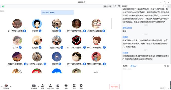 随后,邹国昊博士从文章的构思起源、文章内容以及对匿名审稿人的五轮意见的回复进行了详细汇报和交流。期间,会场气氛热烈。杨雄胜教授就论文选题提出了中肯的意见和建议,李芸老师也针对数据处理提出了相关问题,陈名副教授就论文的写作过程邀请邹国昊同学分享了自己的经验,熊筱燕教授针对本次交流会也发表了自己的想法和感悟。部分研究生同学还就文中的具体细节进行了相互交流。
