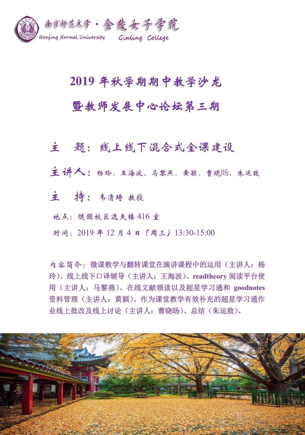 2019年秋学期期中教学沙龙暨教师发展中心论坛第三期预告