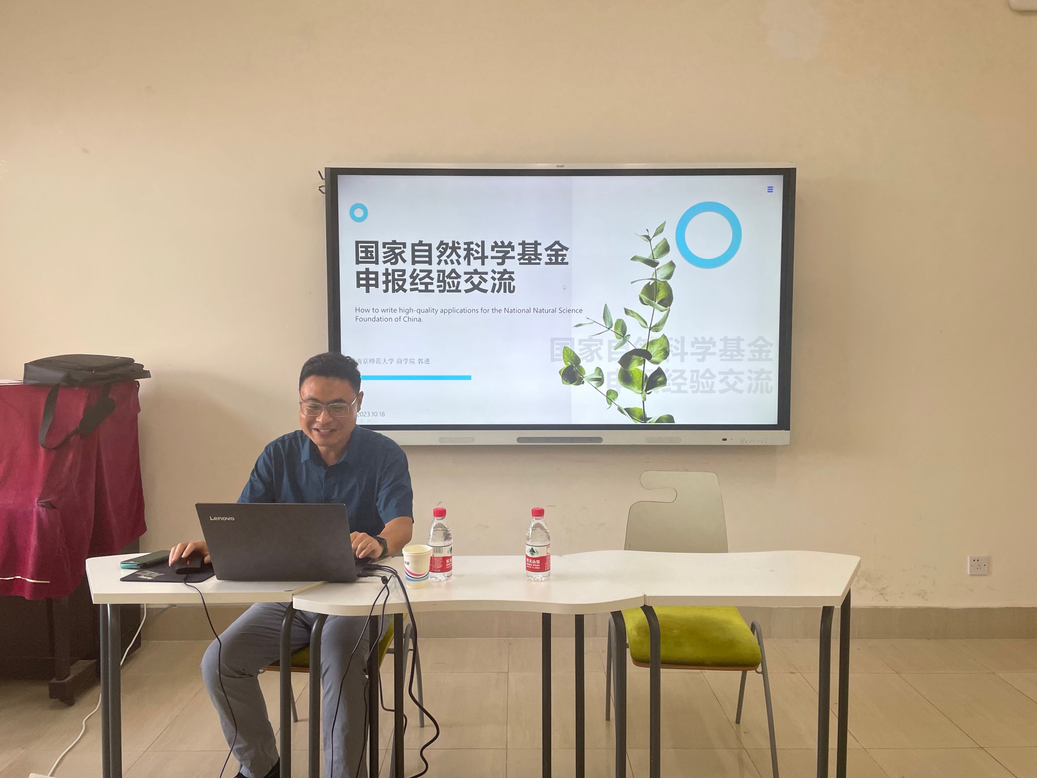 郭老师首先介绍了国家自然科学基金委管理科学部近年来的项目立项情况及部分立项题目,然后全面细致地介绍了国自然申报的基本要求和流程,特别提醒老师们务必认真阅读2024年的国自然申报指南。接着,郭老师以自己的申报本子为例,讲解了如何撰写高质量的研究计划书、如何准备充分的申请材料、注重申请书的语言表达和格式规范等方面。郭老师严谨、细致而完备地展示和讲解了自己的申报书和申报内容撰写细节,跟与会老师知无不言、言无不尽。他的讲解和指导让与会老师获益匪浅。